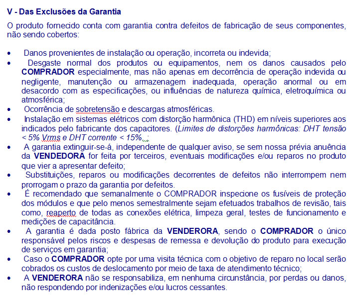 - Exclusões da Garantia